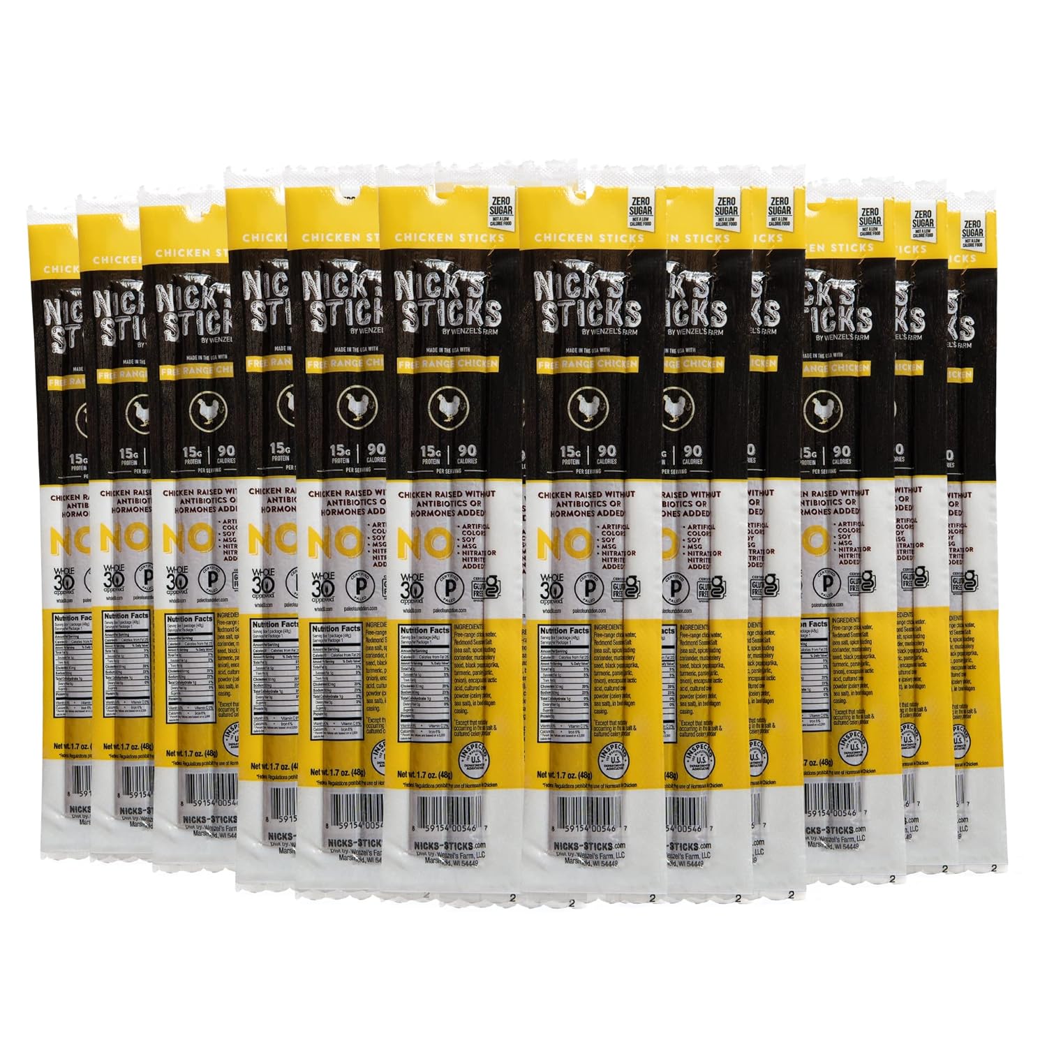 Nick’s Sticks Free Range Clean & Balanced Chicken Snack Sticks | Made in the USA | Gluten Free | Paleo, Keto, Whole30 Approved | No Soy, Antibiotics or Hormones (25-1.7oz. Packages of 2 Sticks)