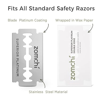 - VERSATILE FOR ALL SKIN AND BEARD TYPES – Whether you seek men’s shaving blade refills or platinum safety razor blades, our premium blades are tailored for your needs. For an optimal experience, pair these blades with Zomchi shaving cream – a beneficial companion that hydrates the skin, shields against irritation, and leaves a soothing sensation after every shave.